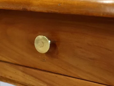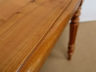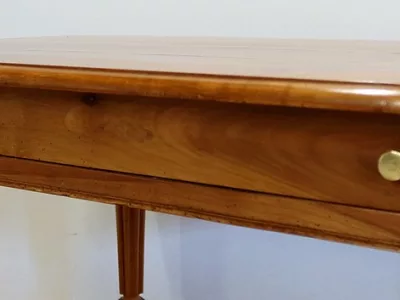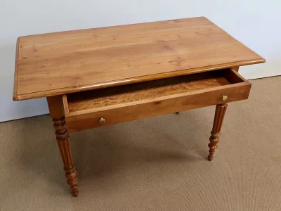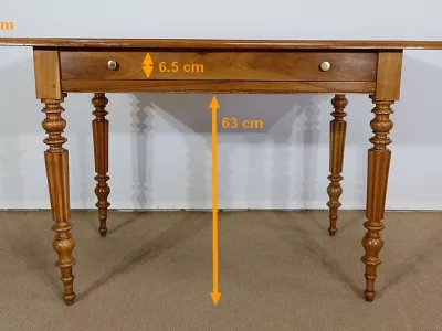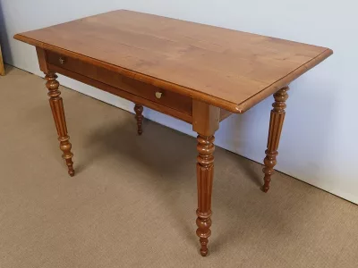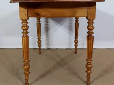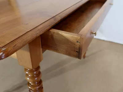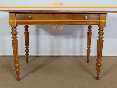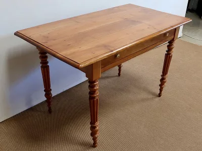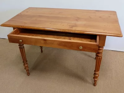Finales del siglo XIX, estilo Louis Philippe, mesa en madera de cerezo con gran cajón de friso. Restaurada en nuestro taller, decapada y con acabado a la cera. Excelente condición. Póngase en contacto con nosotros para la entrega. Referencia: 678T