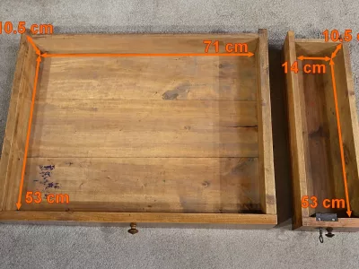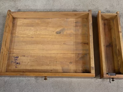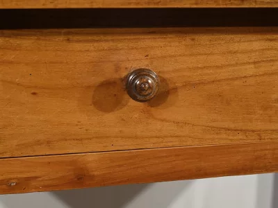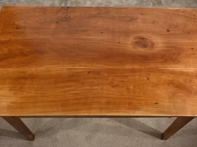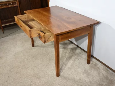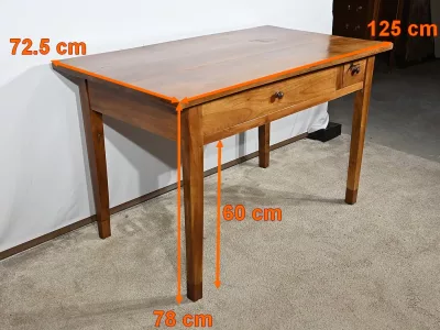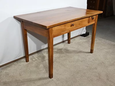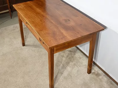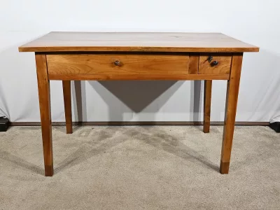 Escritorio de finales del siglo XIX en madera de cerezo con cajón pequeño a la derecha y cajón grande a la izquierda. Restaurada en nuestro taller y en excelentes condiciones.