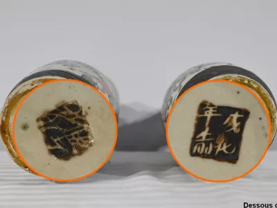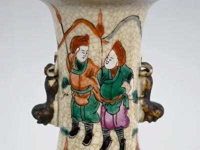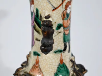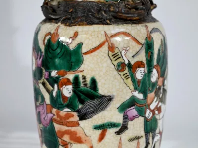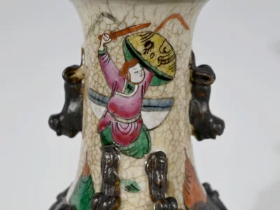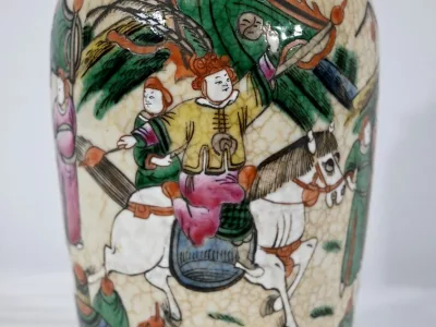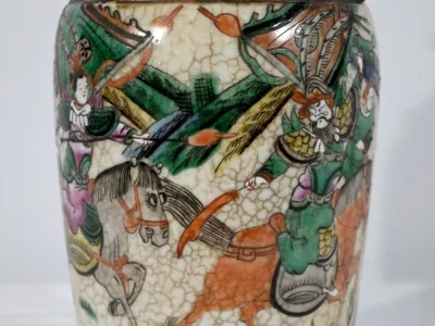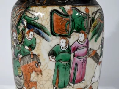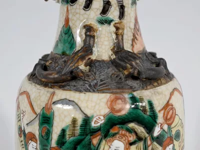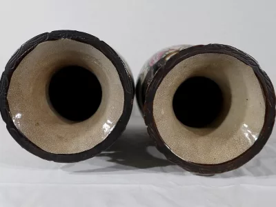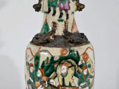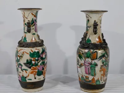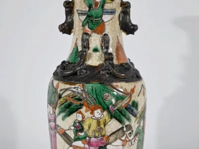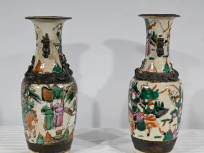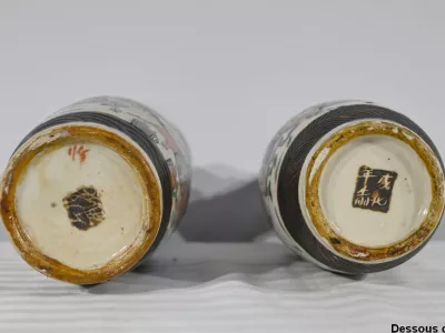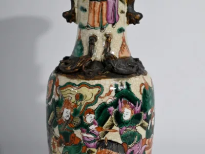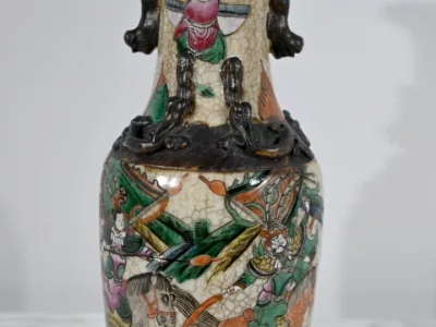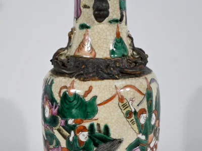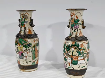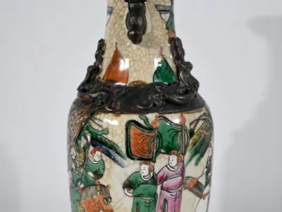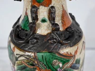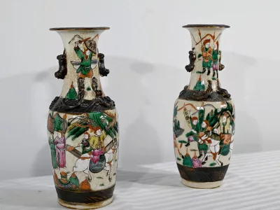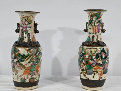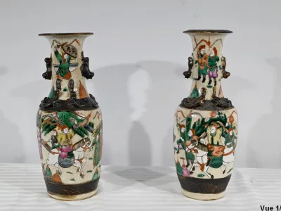 Pareja de jarrones en porcelana Nankin decorados con escenas de batallas. Cada uno está firmado. Finales del siglo XIX. Contáctenos para la entrega. Referencia 695U