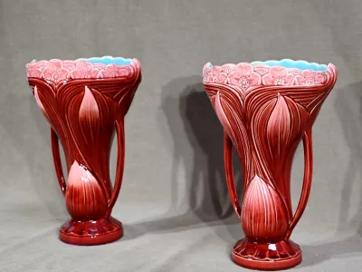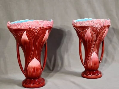 Pareja de jarrones de loza de Digoin-Sarreguemines. Finales del siglo XIX. Excelente condición. Contáctenos para la entrega. Referencia: 706K
