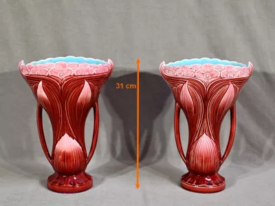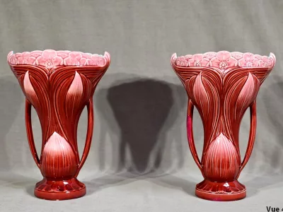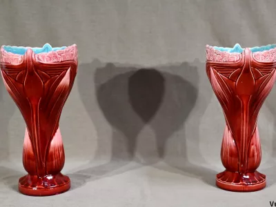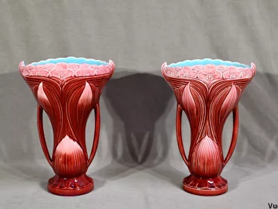 • PAR DE JARRONES firmados DIGOIN SARREGUEMINES
