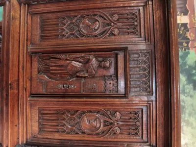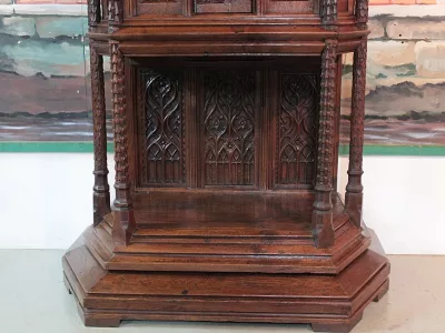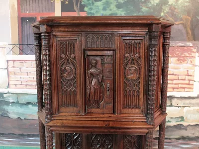 Armario de estilo gótico del siglo XIX en madera de roble tallado. Restaurado, despojado y pulido en nuestro taller. Perfecta condicion