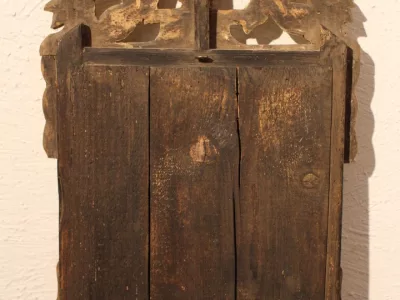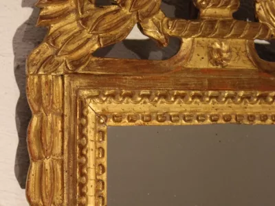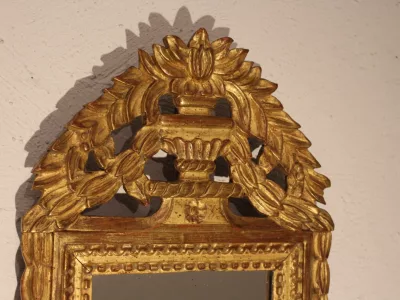 Pequeño espejo de mercurio de época Luis XVI con marco de madera dorada. Excelente condición.