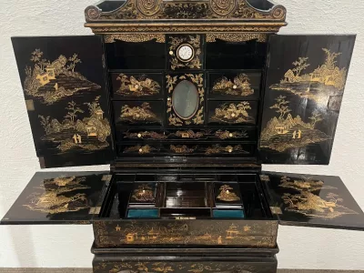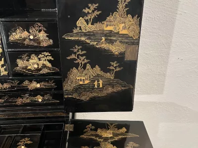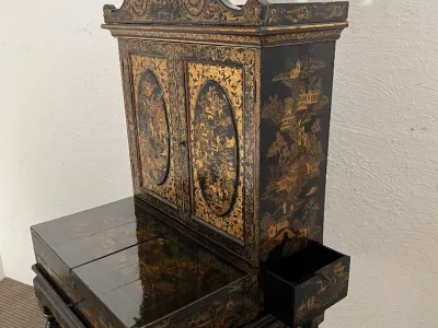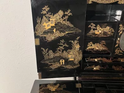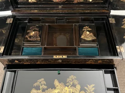 Escritorio del siglo XIX en laca negra ricamente decorado al estilo japonés.