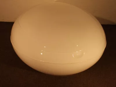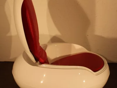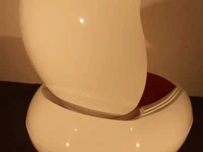 Sillón "Egg" de Peter Ghyczy, años sesenta, en fibra de vidrio blanca. Respaldo retráctil que permite guardarlo en forma de huevo. Muy buen estado.