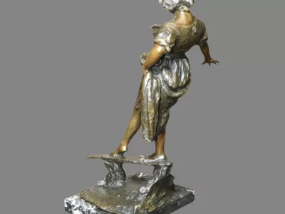 Escultura de bronce "L'Equilibre", realizada en Nápoles por Gabriel Parente, 1875-99. Fundida a la cera perdida. Firmada en el reverso por G. Parente y con el sello de la fundición "Art Napoli".