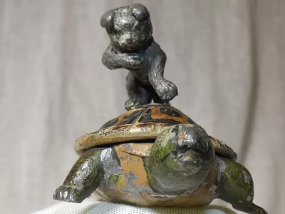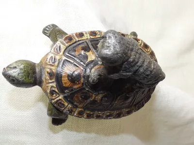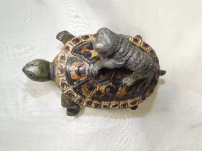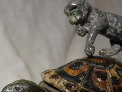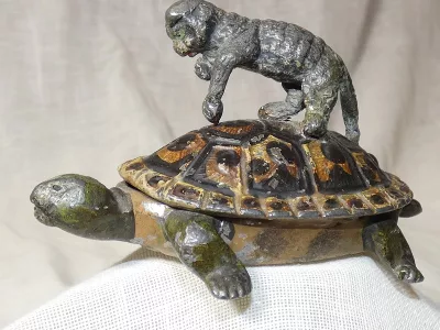 Muy, muy raro grupo principal de Nurmberg de un gato y una tortuga. Alrededor de 1850.