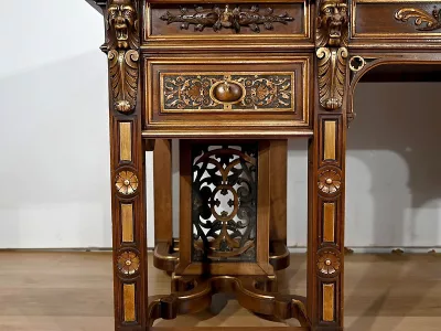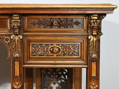 Rares Cabinet de Travail et Bureau en Noyer, Renaissance Italienne – 1900