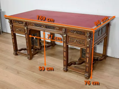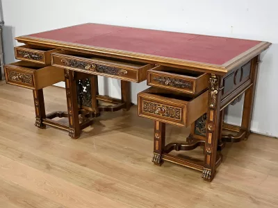 • Rares Cabinet de Travail et Bureau en Noyer, Renaissance Italienne – 1900