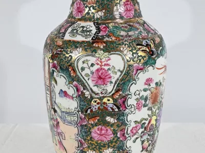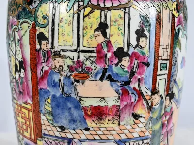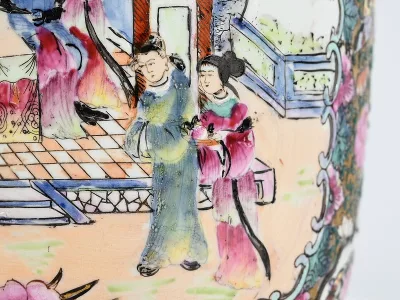 La décoration en émaux polychromes est typique du style mandarin de la fin du XIXe siècle.