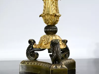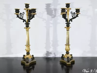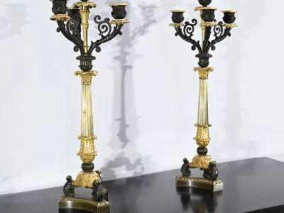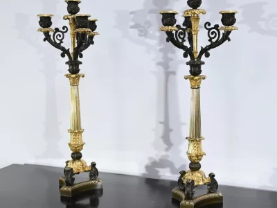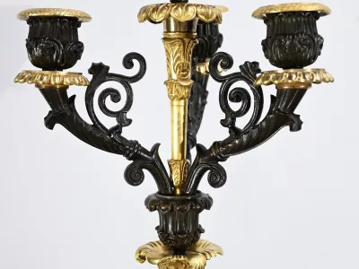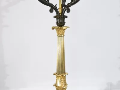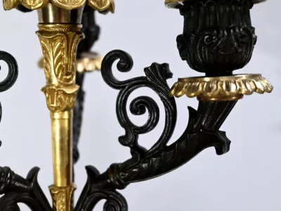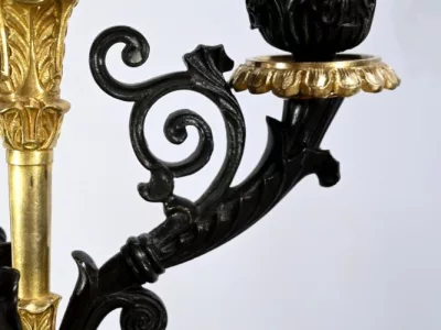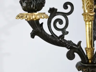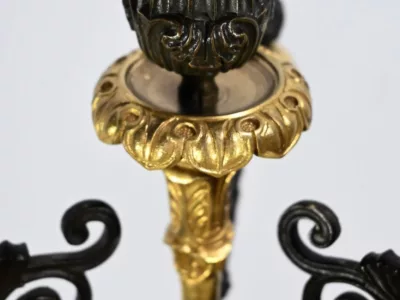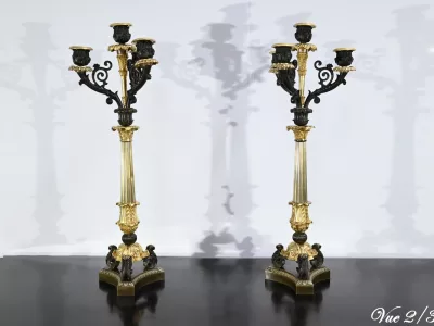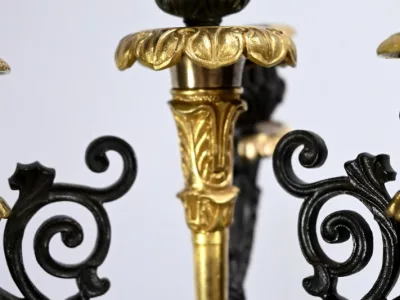 Ces candélabres au travail de ciselure minutieux, imposeront leur charisme par leur grande taille et leurs patines contrastées.