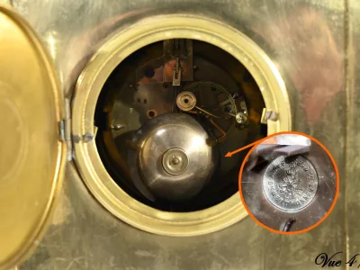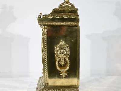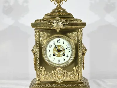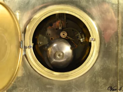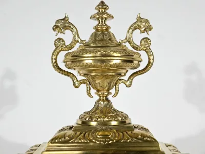 À l’amortissement, une grande coupe aux anses de chimère apporte un style magistral à ce garde temps.