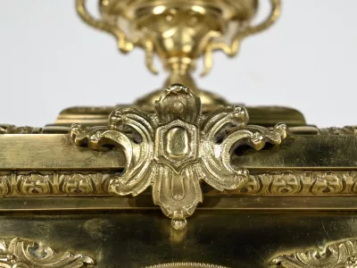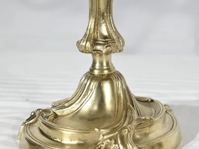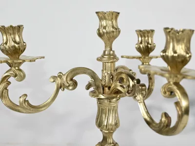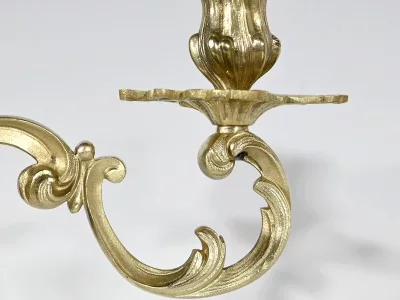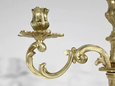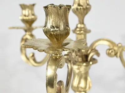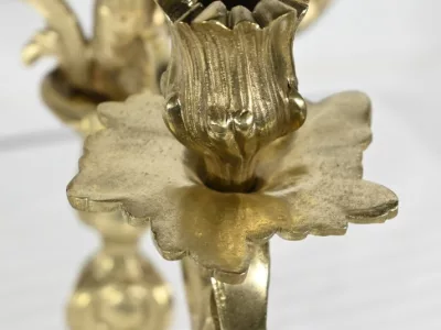 Ces bras supportent des bobèches finement ciselés et des calices à décors de feuilles d’acanthe.