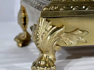 Cette horloge repose sur quatre pieds griffe.
