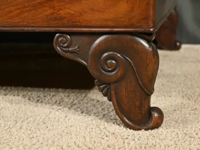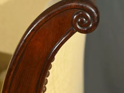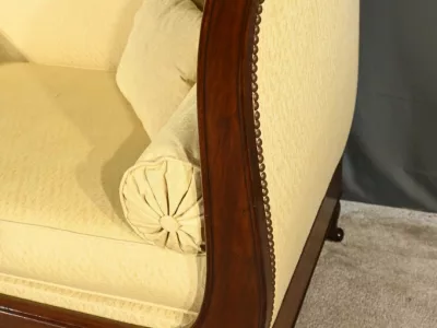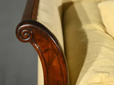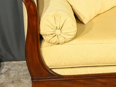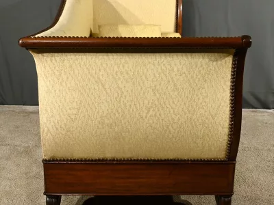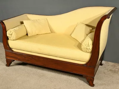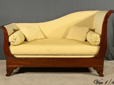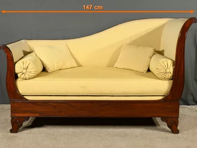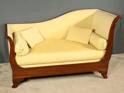 Cette méridienne à dosseret en acajou, datant de la première partie du XIXe siècle, est un magnifique exemple du mobilier de l’époque Restauration.