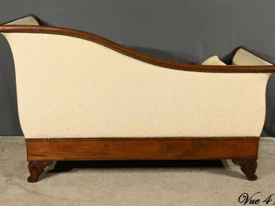 Le dosseret de cette méridienne présente une ligne gracieuse en col-de-cygne, typique du style de l’époque.