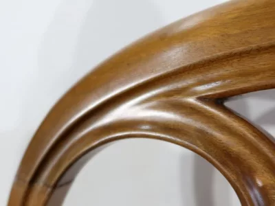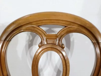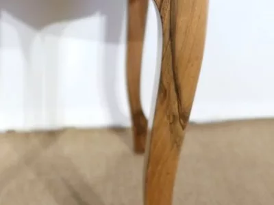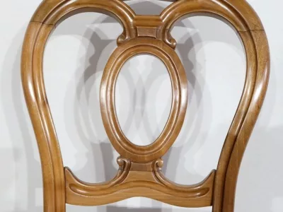 Aux courbes harmonieuses, cette suite de Chaises marquera votre décoration par les teintes chaudes du Noyer, tout en vous permettant de siéger confortablement.