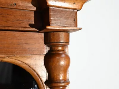 Les montants sont habillés de demi-colonnes en applique et se terminent par des pieds galette.
