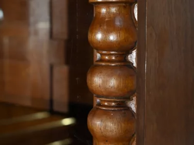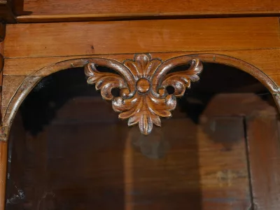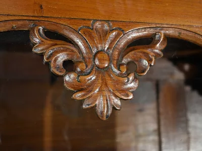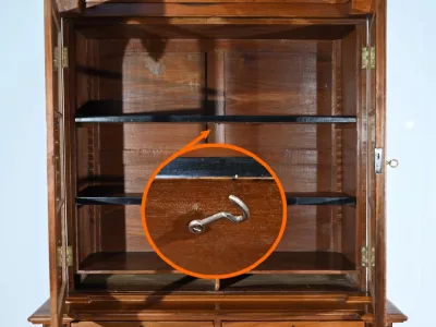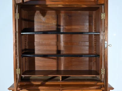 Disposant d’une serrure authentique en état de fonctionnement avec entrée et clé, ces portes sont soulignées par deux motifs de fleurs de lys et de feuille d’acanthe finement sculptées.