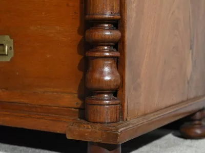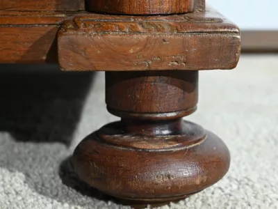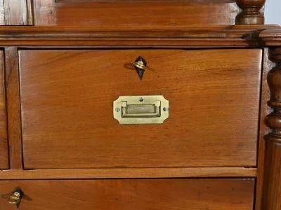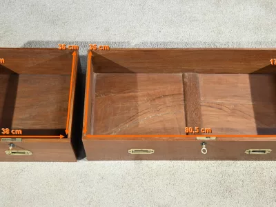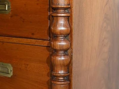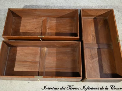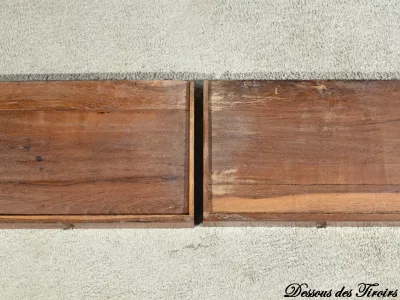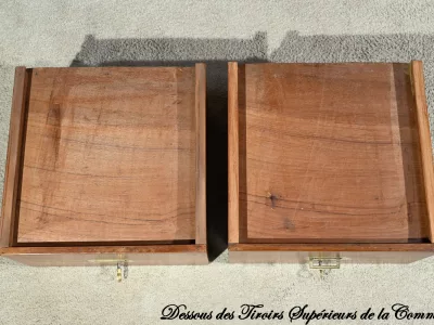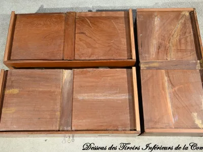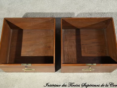 Les intérieurs de tiroirs sont en teck avec traverses centrales et cache-poussières.