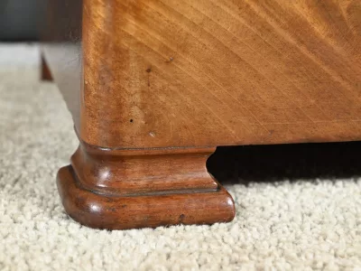 L’ensemble repose sur une plinthe à gorge se terminant par des pieds sabot.