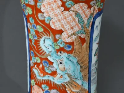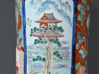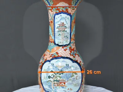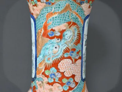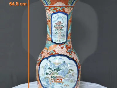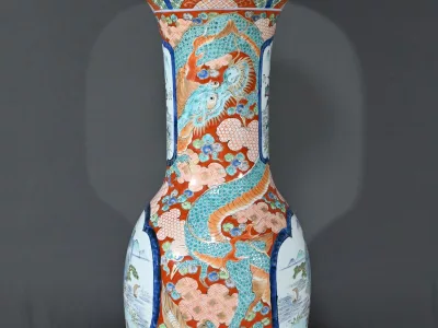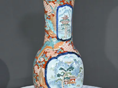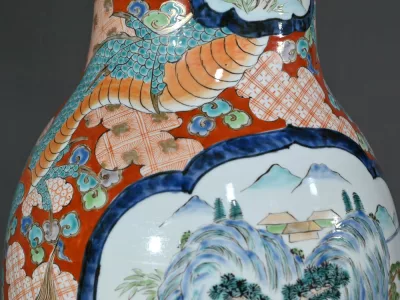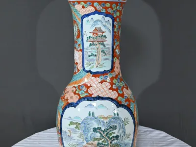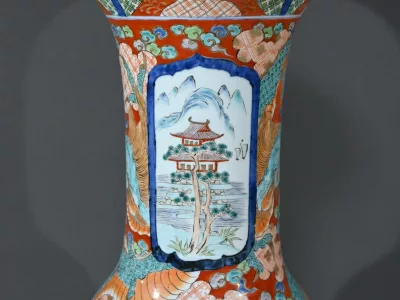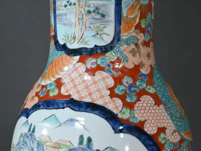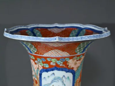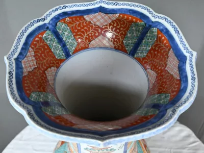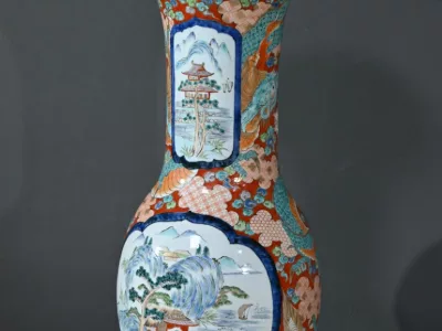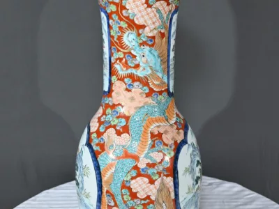 Ce grand vase Arita, en porcelaine, de l’ère Meiji est un exemple remarquable de l’artisanat japonais du XIXe siècle.