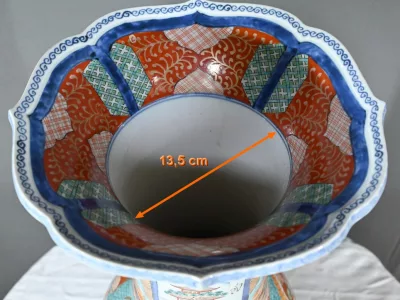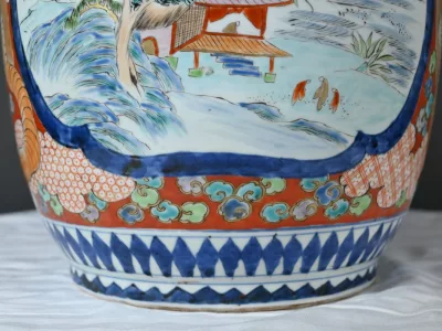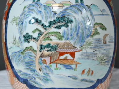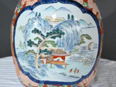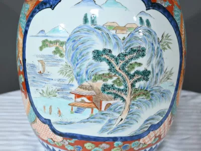 Il présente un corps pansu et un large col s’évasant légèrement vers le haut, typique du style Arita.