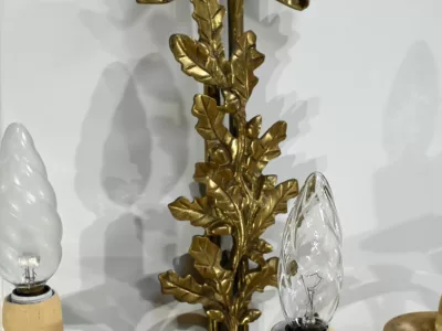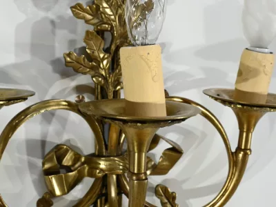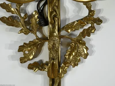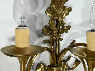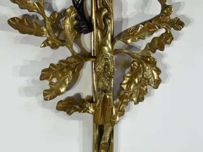 Le corps des appliques est orné de feuilles de chêne enrubannées, ajoutant une touche de nature et de majesté.