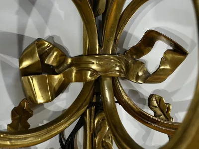 Inspirées du modèle original conçu par Claude Galle pour le grand salon du Petit Trianon, ces appliques se trouvent aujourd’hui dans la salle à manger des retours de chasse de l’appartement intérieur du roi, au château de Versailles.