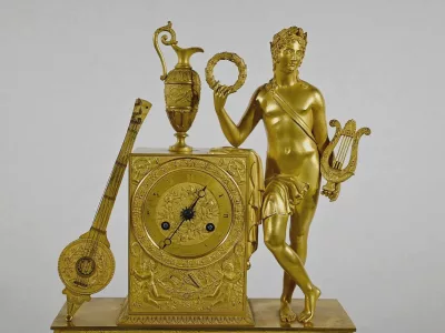 Cette horloge, gardienne du temps, plaira pour ses ornementations raffinées sur le thème de la musique.