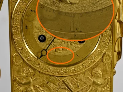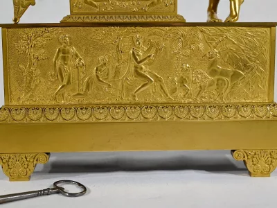 Pendule en excellent état. Mouvement complet, fourni avec clé. Sans garantie de marche. Pouvant être vérifié et révisé sur simple demande avec facture et garantie.
