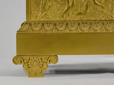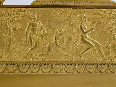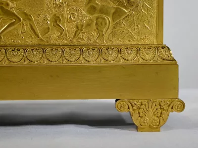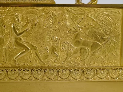 La base est délicatement ciselée d’un concert champêtre entouré d’animaux sauvages.