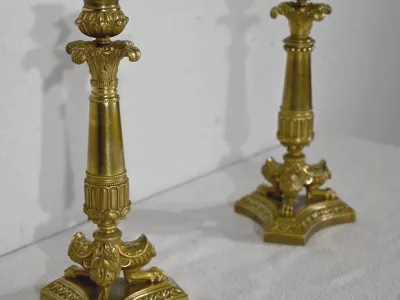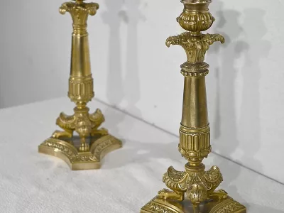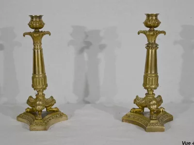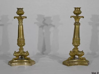 Paire de Chandeliers en Bronze à Double Patine, époque Restauration – Début XIXe