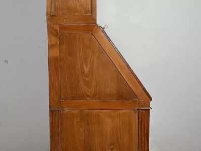 Meuble de propriété en acacia massif, issu d’un travail régional de qualité. Ce bien est constitué d’un bureau de pente sommé d’une vitrine.