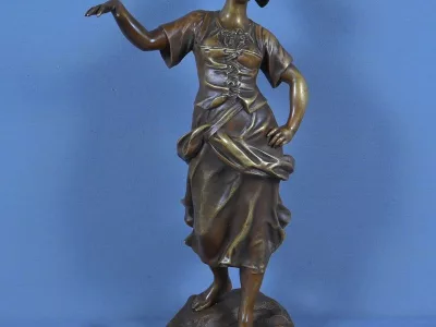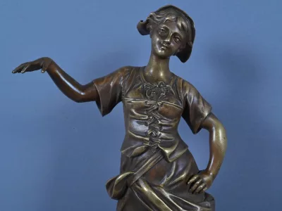Cette œuvre incarne l’esthétique sensible du XIXe siècle, entre réalisme poétique et stylisation décorative. Elle séduira les amateurs de sculpture figurative, d’art décoratif et de scènes de genre empreintes de charme.
