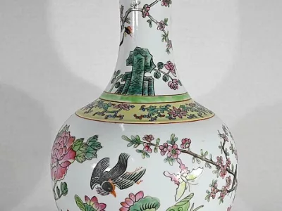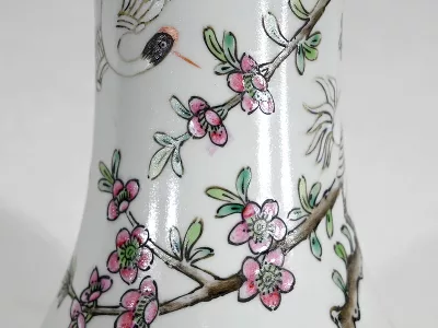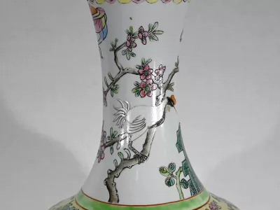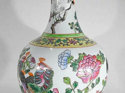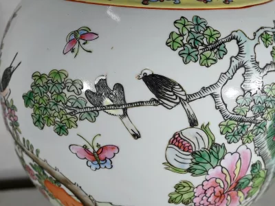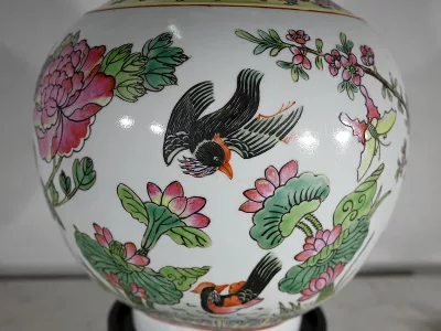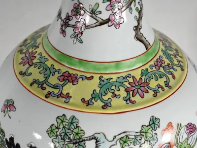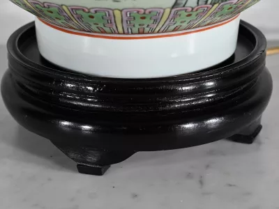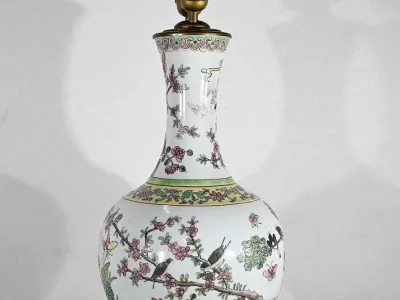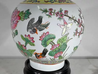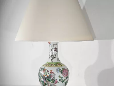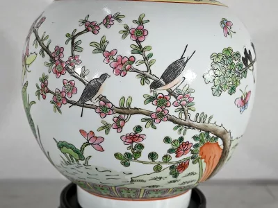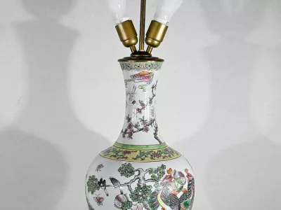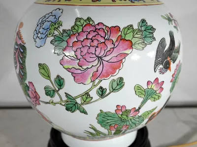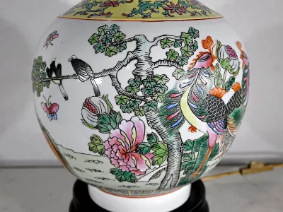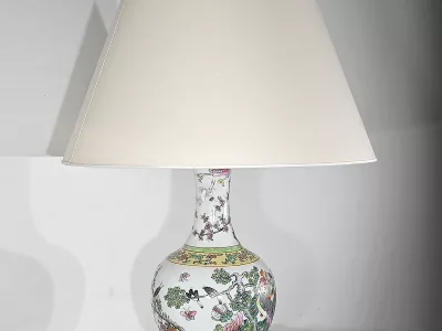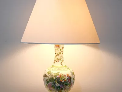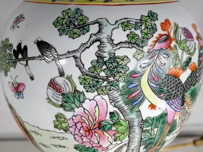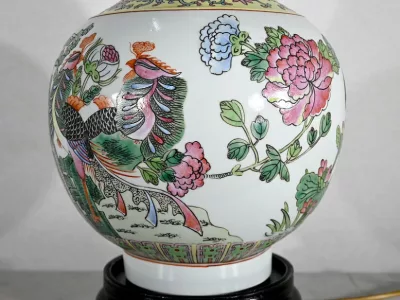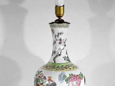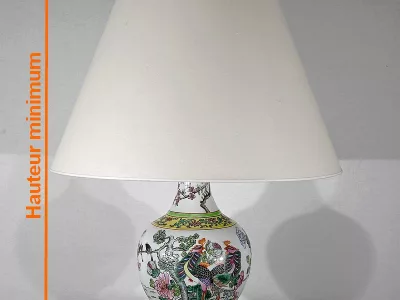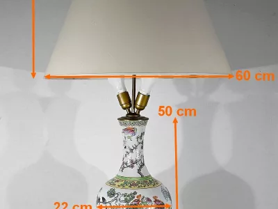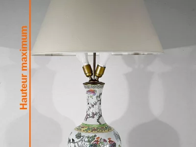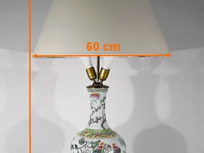 Cette lampe possède une importante envergure qui impressionne et des ornementations peintes aux couleurs délicates et printanières, qui ajoute charme et poésie à l’ensemble.