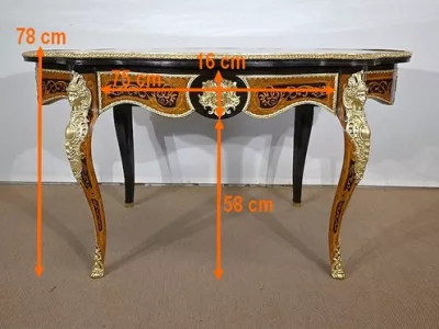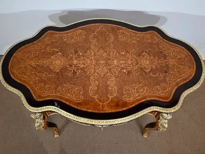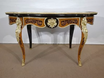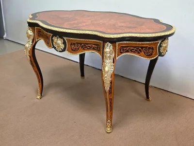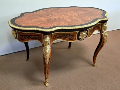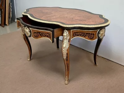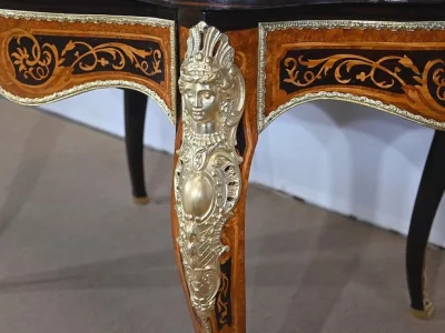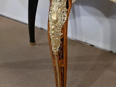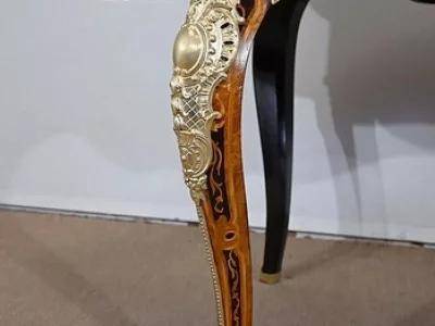 Ayant bénéficié d’une restauration dans les règles de l’art cette table Napoléon III est un meuble unique qui attirera les regards par ses riches ornementations et la parfaite harmonie de ces bois précieux.