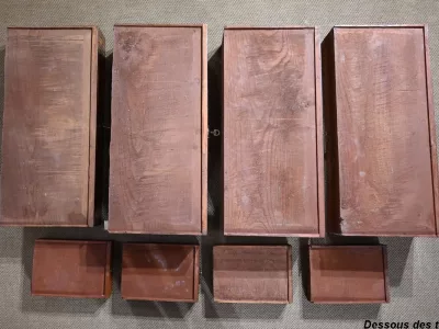 À noter la présence de cache-poussières au niveau des tiroirs.