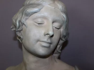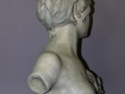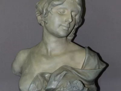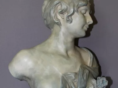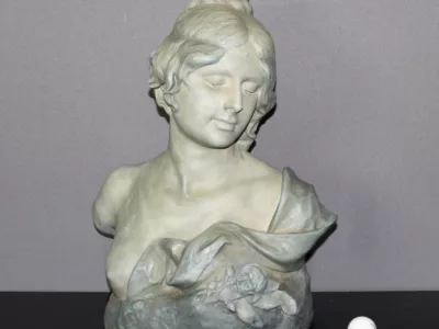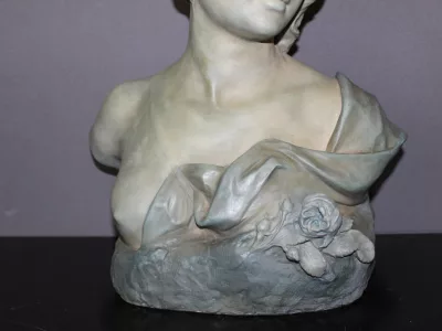 • Buste De Jeune Femme En Céramique à Patine Bleu Vert Signé Bernstamm édition Emile Muller