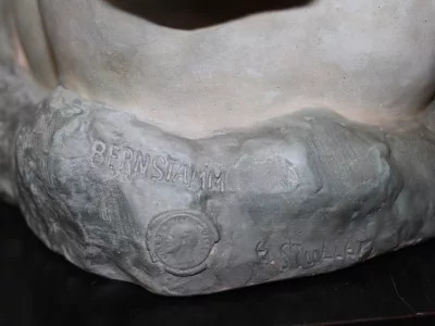 Buste De Jeune Femme En Céramique à Patine Bleu Vert Signé Bernstamm édition Emile Muller