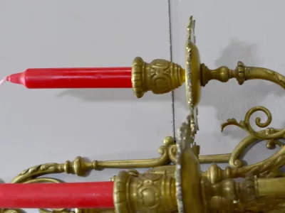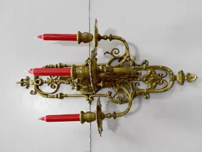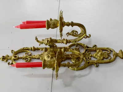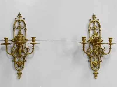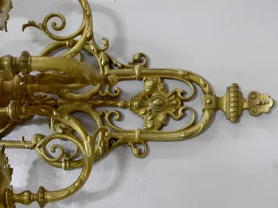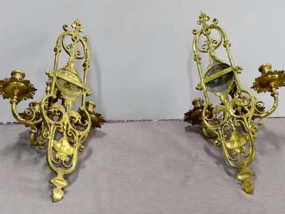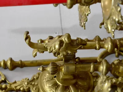 Importante paire d'appliques en bronze à 3 bougeoirs, dans le goût Louis XIV.