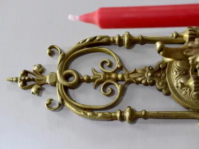 Elles sont décorées d'arabesques et de rinceaux, arborant une tête de lion en son milieu.