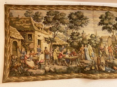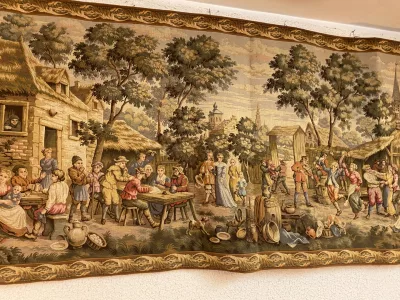 tapisserie en laine, des années 40, représentant un paysage arboré.