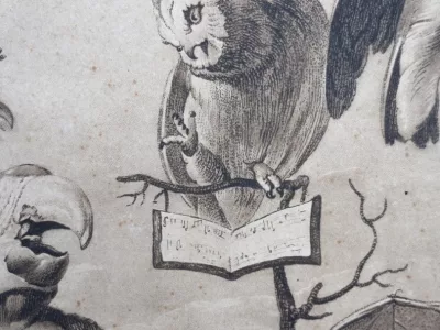 Mario Di Fiori de son vrai nom Mario Nuzzi 1603-1673 est un peintre italien spécialiste des compositions florales et des natures mortes, son célèbre « Concert d'oiseaux », différent de sa production habituelle, représente avec virtuosité et réalisme de nombreux volatiles perchés sur des branches et formant un Chœur autour d'un hibou faisant office de chef.