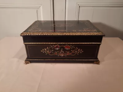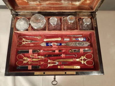 Le coffret est en très bon état, traces d’usure dans les compartiments intérieurs.