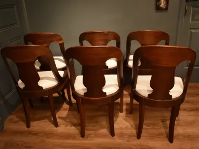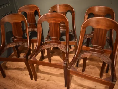 Suite de six chaises "gondole" de salle à manger, en acajou de style Restauration.