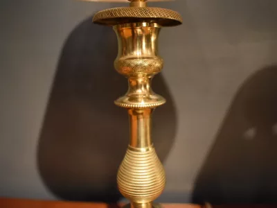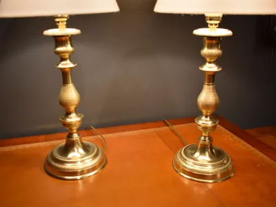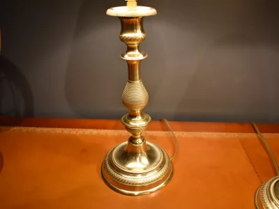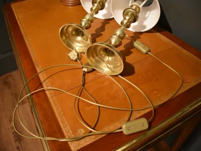 Paire de lampes en bronze faite avec des bougeoirs  Restauration finement ciselés, l'électrification