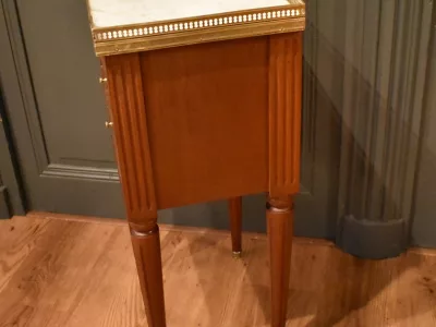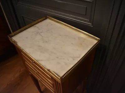 Le dessus en marbre blanc est entouré d'une galerie ajourée.