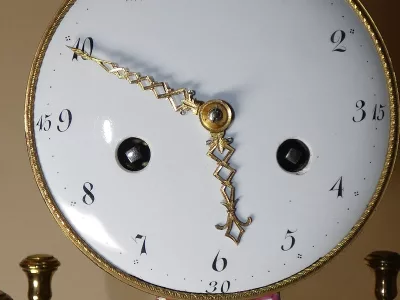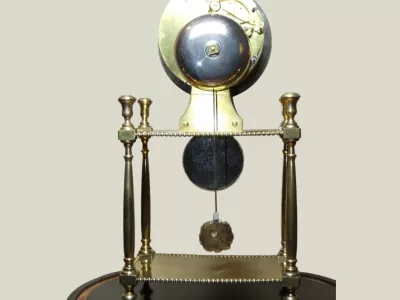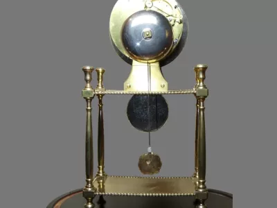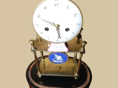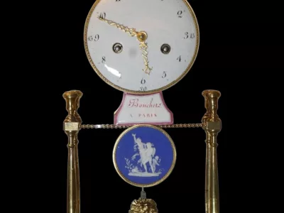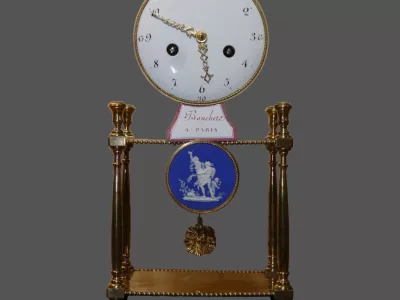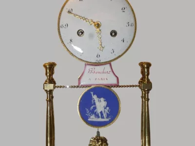 Pendule portique semi-squelette en bronze doré, le cadran émaillé avec plaque et signature de jean louis BOUCHET à Paris époque fin du XVIIIème - début du XIXème siècle ( horloger du ROI).