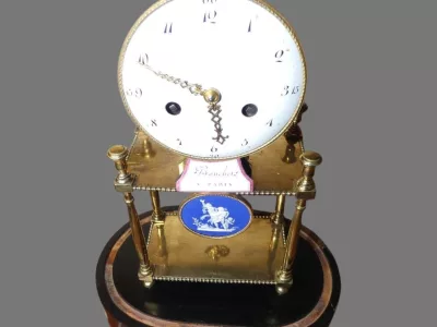 Décorée d'un camée en porcelaine de WEDGWOOD représentant l'enlèvement de Psyché par Favonius et reposant sur quatre colonnes.